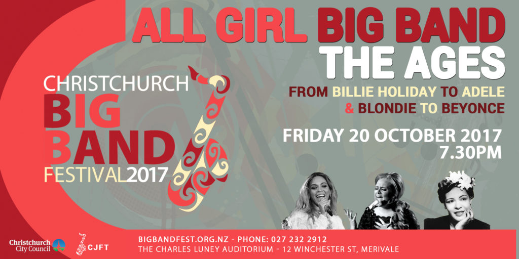 A year after their tribute to Natalie Cole, the All Girl Big Band presents “a celebration of women through the ages” as their new offering. This premiere of their new show featured as the opening act of the Christchurch Big Band Festival 2017.